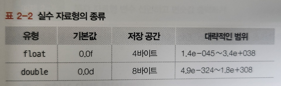 // float 자료형은 변수에 저장하는 실숫값 끝에 반드시 f를 붙여야 하고, double 자료형은 변수에 저장하는