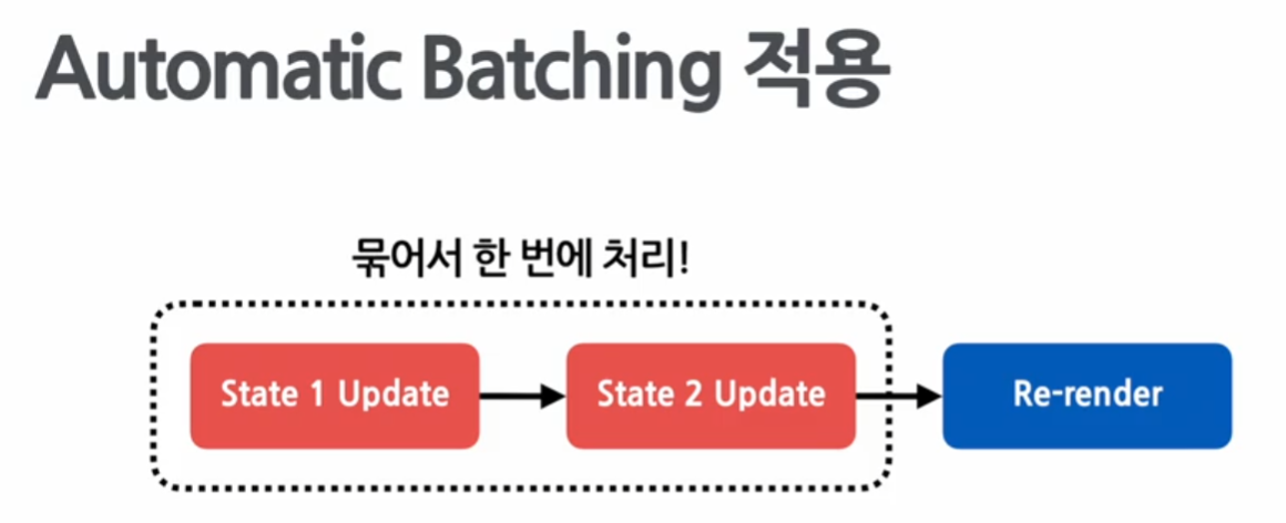 - ๊ธฐ์กด ๋ฆฌ์กํธ ๋ฒ์ ์์๋ ์ด๋ฌํ ๋ฐฐ์นญ์ด ๋ฆฌ์กํธ ์ด๋ฒคํธ ํธ๋ค๋ฌ ๋ด์์๋ง ์ด๋ฃจ์ด์ง
