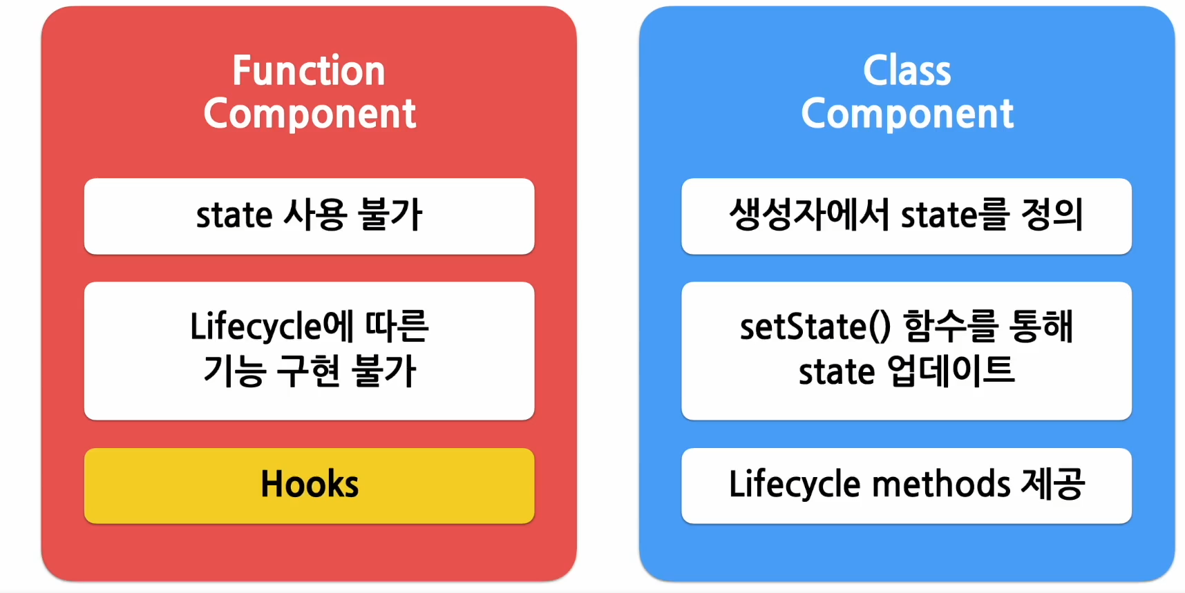 - Hook์ ์ฌ์ฉํ๋ฉด ํจ์ ์ปดํฌ๋ํธ๋ ํด๋์ค ์ปดํฌ๋ํธ์ ๊ธฐ๋ฅ์ ๋ชจ๋ ๋์ผํ๊ฒ ๊ตฌํํ ์ ์์