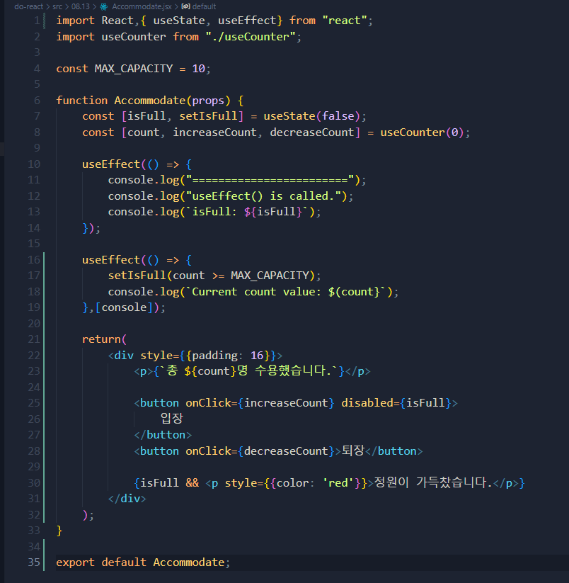 - Accommodate ์ปดํฌ๋ํธ๋ useCount ํ ์ ์ฌ์ฉํ์ฌ ์นด์ดํธ๋ฅผ ๊ด๋ฆฌ