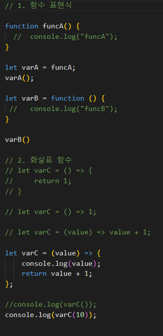 함수 표현식 중 가장 많이 사용하는 화살표 함수