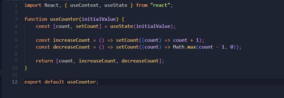 🛜 useCounter() Custom Hook 만들기useCounter Hook은 초기 카운드 값을 파라미터로 받아서 카운트라는 이름의 state를 생성하여 값을 제공하고 카운트 증가 및 감소를 편리하게 할 수 있도록 함수를 제공하는 HookuseCounter Hook을 사용하면 어떤 함수 컴포넌트에서든지 카운트 기능을 쉽게 사용 가능🛜 Accommodate Component 만들기Accommodate 컴포넌트는 useCount 훅을 사용하여 카운트를 관리최대 카운트 개수는 maxCapacity라는 이름의 상수로 정의되어 있고 카운트 개수가 최대 용량을 초과하면 경고 문구가 표시되며 더 이상 입장이 불가능useEffect 훅의 작동 방식을 사용하기 위해 일부러 두 개의 useEffect 훅을 사용하..
